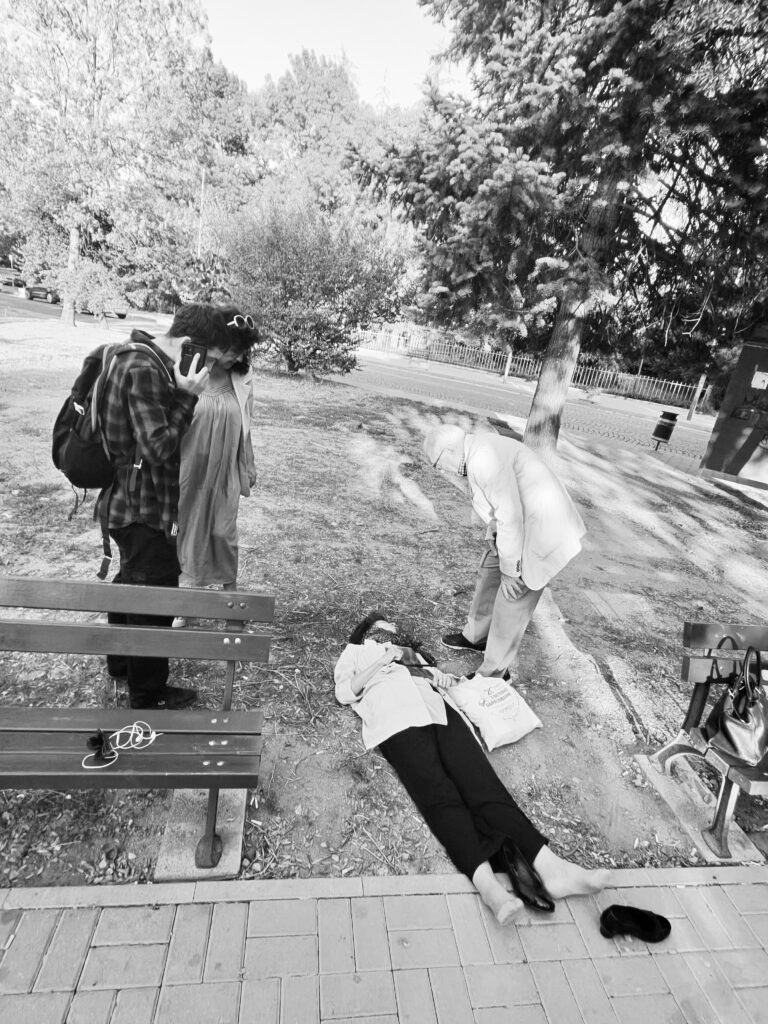 So eventually, we helped the lady to stand and sit on the bench. A no comment photos will follow, to happy end the story – the bottomline is – sign up for a first aid course, as it can save someone’s life. Leave it to professionals, be a human, act as a team with total strangers… and sometimes be a creep to document the story with them stupid meta AI glasses. Street/reportage is about interruptions, about things snapping into frame with no warning – embrace them.