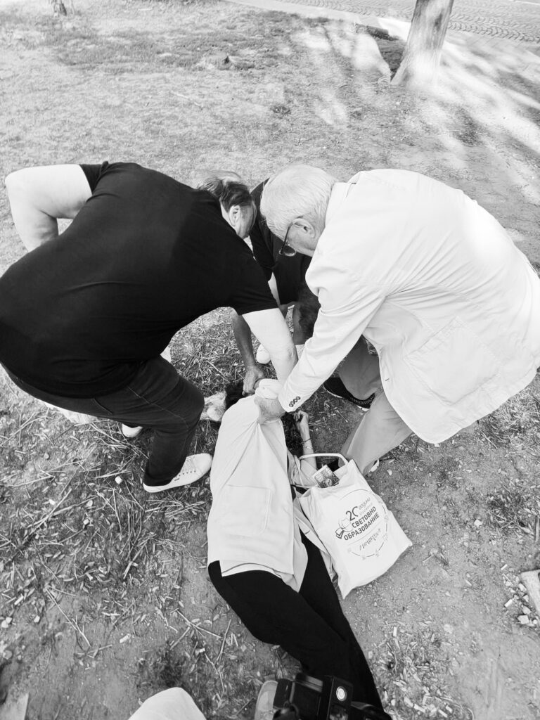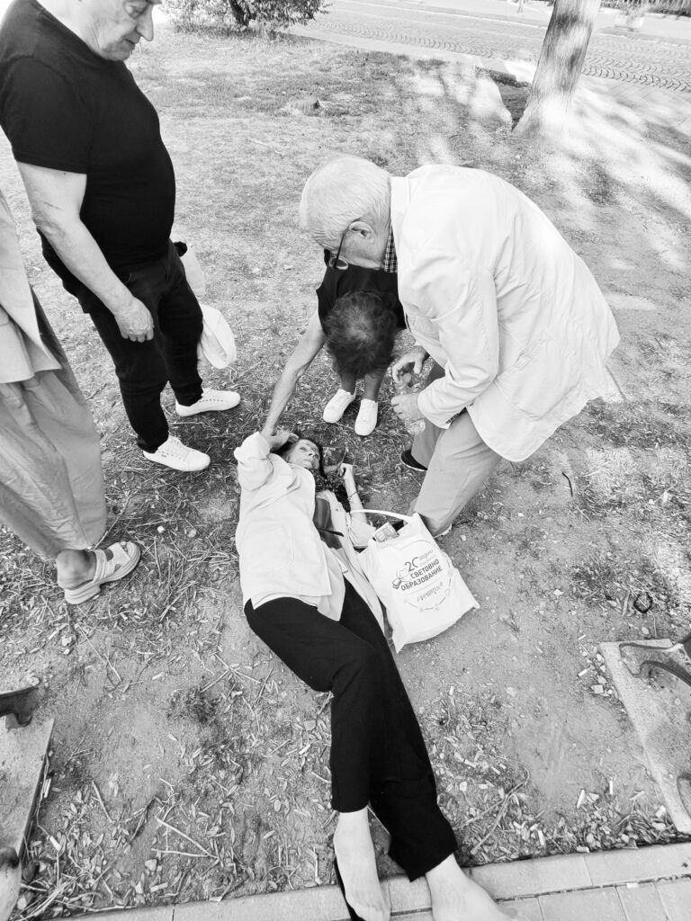 The only ever really valuable training that I have ever received from employer at work is the “First response” course @ work from Bulgarian Red cross. This is really invaluable training on what to do in these situations. So as the steps for securing the scene were performed, I’ve decided to act by turning her gently sideways, so her throat is clear and she can breathe better.